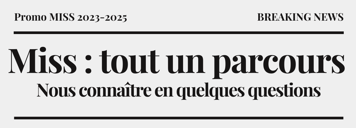 Breaking news : la promo MISS 2025 sort son journal. On y retrouve les témoignages de quatre étudiantes qui partagent en quatre questions – réponses tout le piquant de leurs parcours et de leur humour !